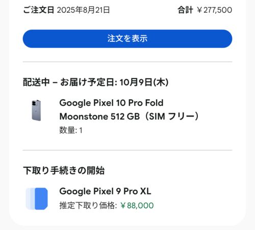 「さはら3」です。 AI副業でどこまでいけるのか?をテーマに頑張っていきたいと思います。 今回は、Googleの最新スマートフォン Google Pixel 10 Pro Fold(512GB)を購入しましたのでそのご報告です。 Google Pixel 10 Pro Fold 昨年のPixel 9 Pro XLは実…